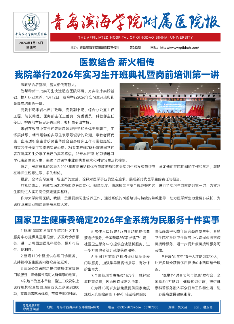 医教结合 薪火相传 | 青滨附院举行2026年实习生开班典礼暨岗前培...