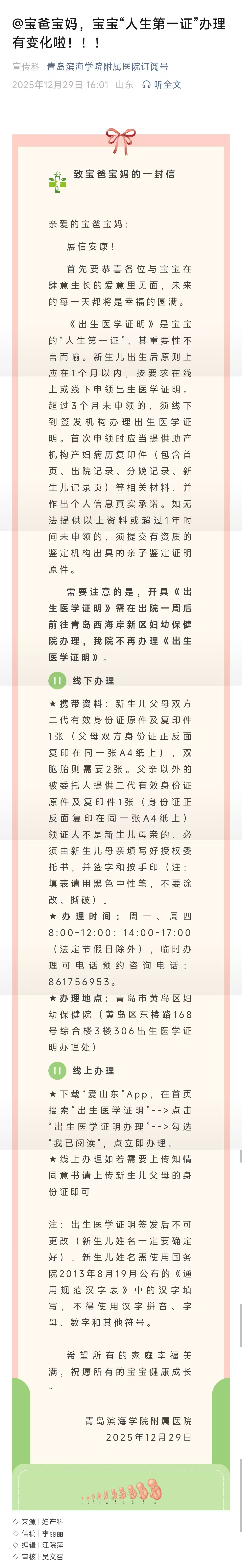 @宝爸宝妈,宝宝“人生第一证”办理有变化啦!!!