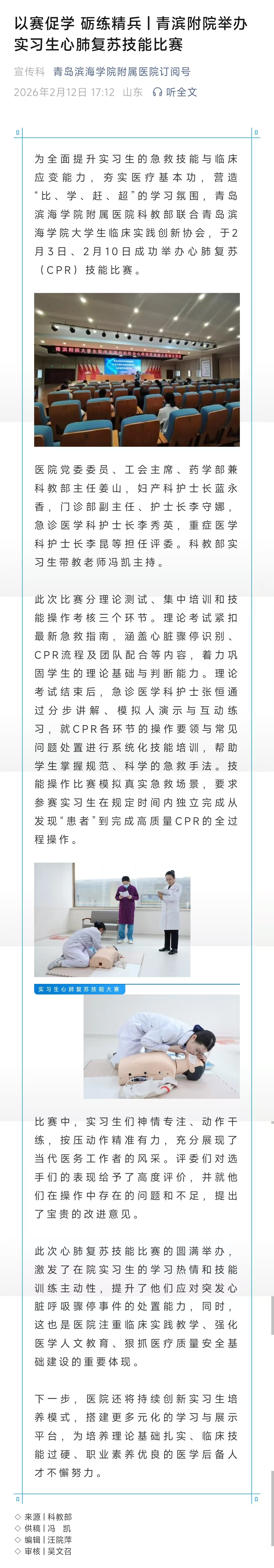 以赛促学 砺练精兵 | 青滨附院举办实习生心肺复苏技能比赛