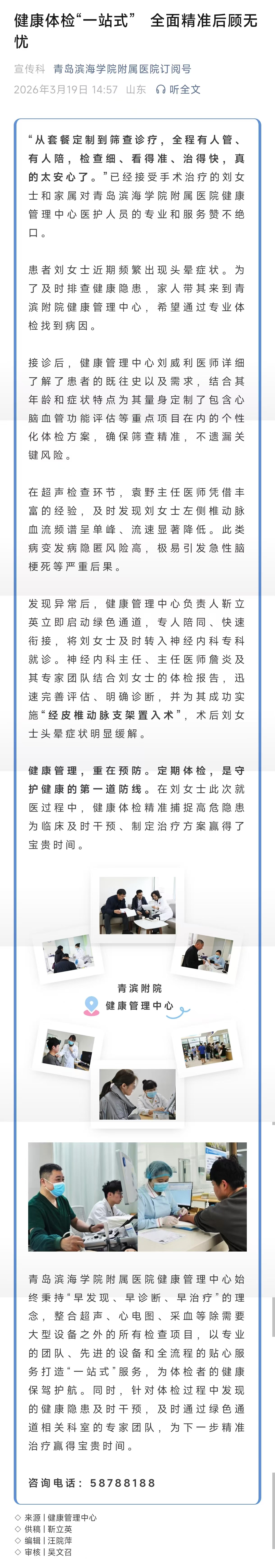 健康体检“一站式” 全面精准后顾无忧