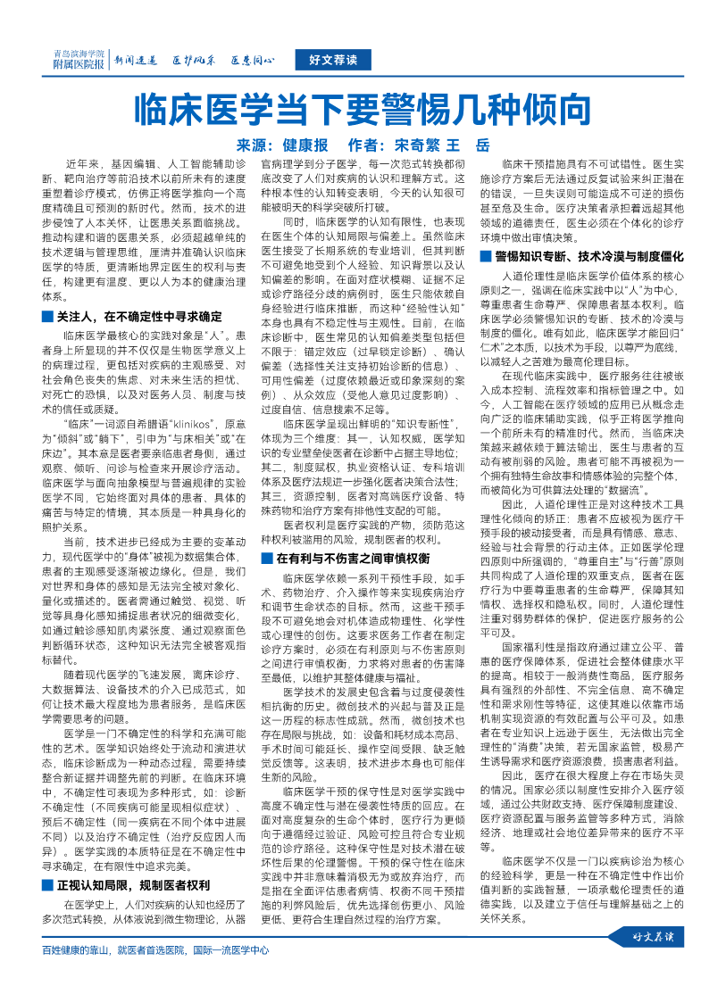 青岛滨海学院附属医院报链接: