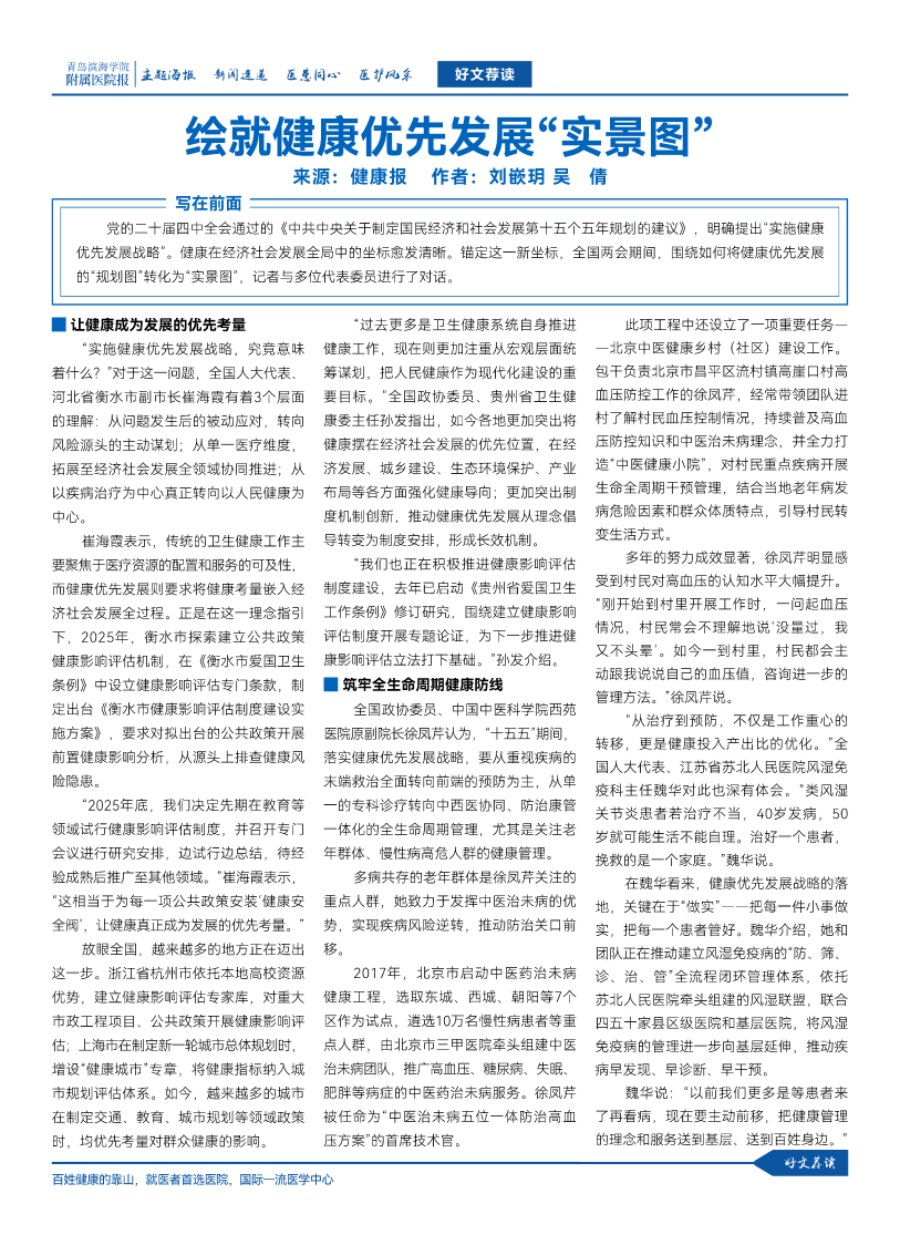 青岛滨海学院附属医院报链接: