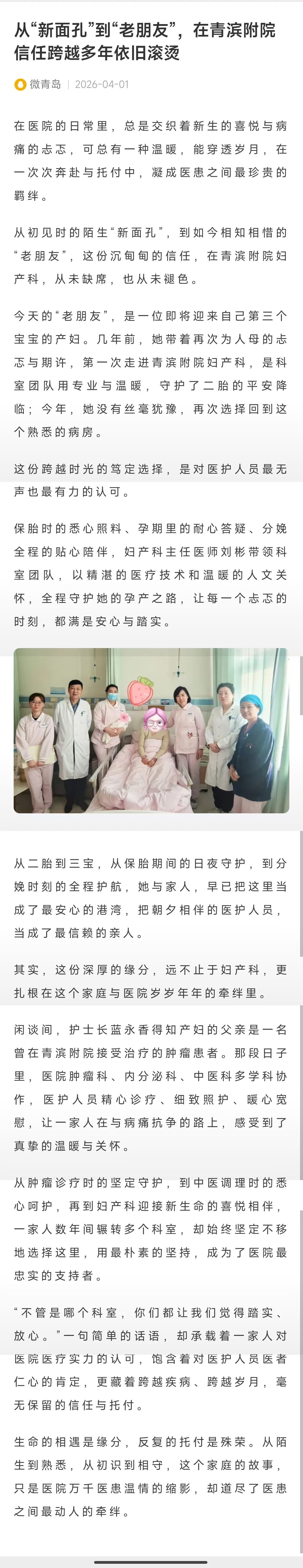 【老年生活报】从“新面孔”到“老朋友”,在青滨附院信任跨越多年依旧滚烫