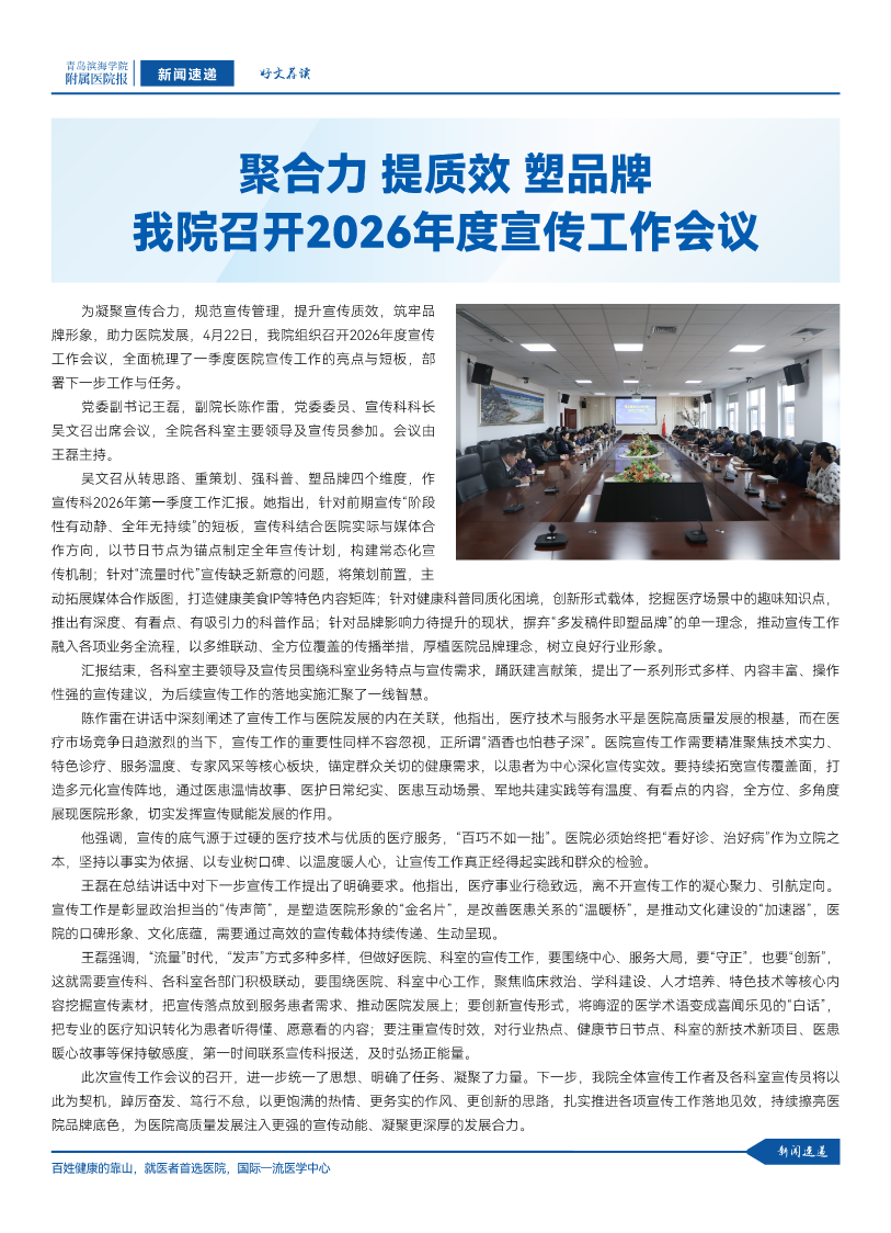 青岛滨海学院附属医院报链接: